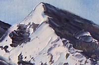 As shown right, more than one colour can be added to the knife, this can be especially useful where large sweeps of are colour are needed - an expanse of flat water for instance or the side of a building. Practice different ways of loading the knife and different actions when applying the paint. Try and develop a light touch when applying the paint, too much pressure and the paint will be removed as fast as you try to apply it. The edges of the blade should not be too sharp, a blunt, smooth edge is often the easiest to work with, if it appears too sharp, dull/blunt it by rubbing on fine 'wet and dry' emery paper. A sharp edge can damage the primed surface of the canvas and even cut into the fabric. Test the blade by picking paint up from a palette, it should cut through and lift the paint with a smooth feel against the palette. |